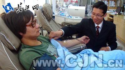 绿色的体恤衫、黑色的牛仔裤,杨晨晖一个人走进血液中心时,就如一个朴实的阳光男孩,只有他戴着的黑框眼镜和银色耳钉,才让人嗅出一点文艺“范儿”。谈起这次献血,杨晨晖笑着说,这不得不提到他的一个朋友李军。5月初,杨晨晖在出席了一场大型活动时,认识了经营某培训机构的李军,相似的奋斗历程和人生目标,顿时让两人生出“相见恨晚”的感觉。在谈话中,曾献血26次的李军得知杨晨晖是天门市无偿献血的形象代表,却一次都未参与无偿献血后,觉得既诧异又遗憾,于是在自己5月19号的生日时,把杨晨晖带到武汉血液中心参观。
