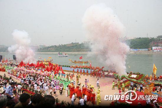 宽阔的汉江两岸,宾客云集;美丽的金州古城,双手迎客。上午9时整,安康市长方玮峰主持开幕式,中共安康市委书记、市人大常委会主任刘建明致欢迎辞;市委、市人大、市政府、市政协、汉滨区委、区人大、区政府、区政协的领导同志代表安康各界群众向屈原像敬献花篮;省政协副主席刘新文、省决策咨询委员会主任徐山林、省政协原副主席王寿森、省军区原司令员陈时宝为巨龙点睛,为安康人民祈福;省政协副主席刘新文宣布龙舟文化节正式开幕。