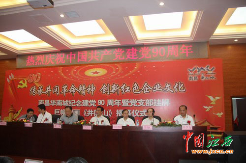 中国江西新闻网7月1日讯(记者袁斌 报道)7月1日上午,南昌华南城纪念建党90周年暨党支部挂牌、巨幅国画《井冈山》揭幕仪式宣传活动在南昌华南城有限公司办公楼隆重举行,省、市、红谷滩新区领导、文化界大师及媒体朋友们到场共同庆祝建党90周年。