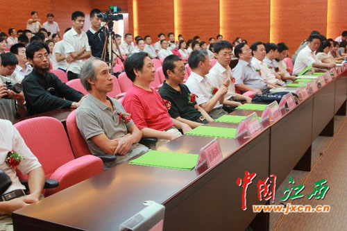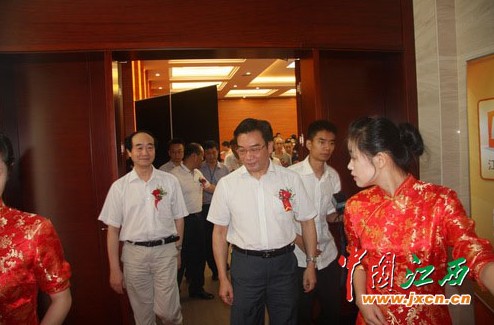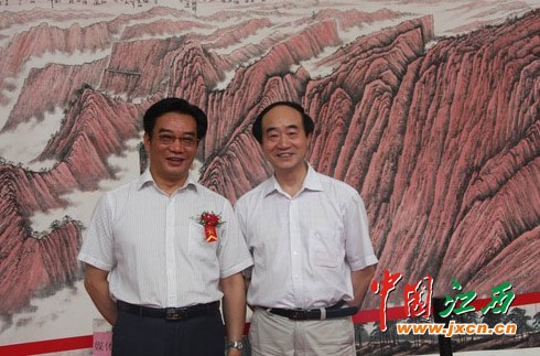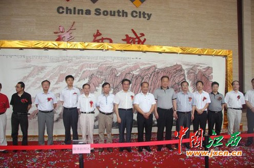 江西省经济干部管理学院院长蒋斌,省文化厅副厅长、巨幅国画《井冈山》作者、著名画家汪天行,省外宣办主任欧阳苏勤,省委宣传部副巡视员邱尚仁,省社科院副院长叶青,原省委宣传部副部长、省文联党组副书记俞向党,省国防公办副主任刘星,南昌市政府副秘书长、红谷滩新区管理会主任宋铀,红谷新区工委副书记邹国星,红谷滩新区红角洲管理处副书记涂咸高,红谷滩新区九龙湖管理处副书记陈勇,南昌轨道公司党委副书记、董事长毛顺茂,江西省美术出版社社长、著名画家刘洋,江西省美协副主任、著名画家游新民,南昌画院院长、著名画家周京山,著名画家石大法、王迎春,南昌华南城有限公司总经理章学方等领导和嘉宾出席此次仪式。