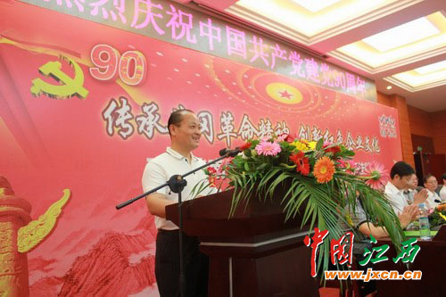 紧接着红谷滩新区管委会主任宋铀发言:90年前,伟大的中国共产党从南湖游船扬帆启航,战胜了一个惊涛巨岸,谱写了一个个辉煌的篇章。90年,南昌华南城在红谷滩谱写了一座现代新城的故事传奇。此次南昌华南城纪念建党90周年暨党支部挂牌巨幅国画《井冈山》揭幕仪式”,再一次翻开了我们各级党支部崭新的一面,希望南昌华南城带领广大党员不懈努力,再攀高峰,为谱写南昌华南城未来发展的华美篇章,为红谷滩新区打造鄱阳湖生态经济区中有国际化的新区,作出新的更大的贡献。