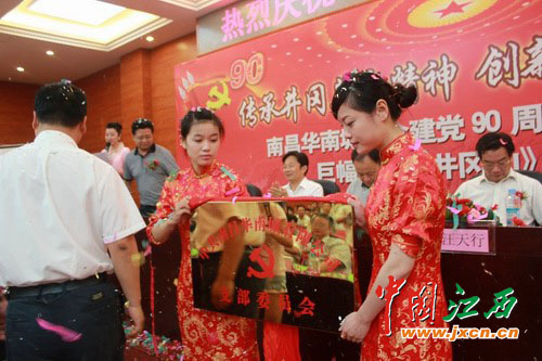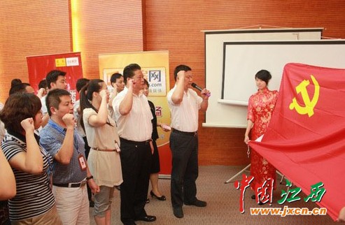 在中国共产党建党90周年的特殊日子里,南昌华南城党支部正式挂牌成立,向建党90周年献礼。这是南昌华南城对红色文明最直接的一种传承,也是华南城开创红色企业的良好开端。华南城党支部的成立,为南昌华南城事业的蓬勃发展增添了新的动力,更为南昌华南城的团队的凝聚力和战斗力增添了无穷的活力。