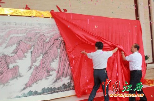 在巨幅国画《井冈山》的揭幕仪式上,一座气势恢弘的井冈山呈现在了众人的面前。这幅7.1米宽的画作是省文化厅副厅长、著名画家汪天行先生的心血力作,表现的是井冈山的内在气质和精神内涵。巨幅国画《井冈山》在南昌华南城揭幕主旨就是南昌华南城传承和发扬井冈山精神,把井冈山精神投入到企业发展中,为南昌经济及至江西经济贡献更大的力量。