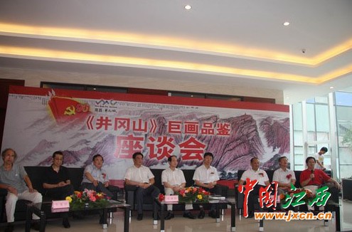江西文化界知名人士和著名书画家、评论家对巨幅国画“井冈山”进行品鉴,指出这是一幅“有力量”的作品,体现了井冈山的磅礴、伟大,体现了井冈山的精神之魂,象征者我们党、我们共和国,和正在充实的市场经济的发展” 。
