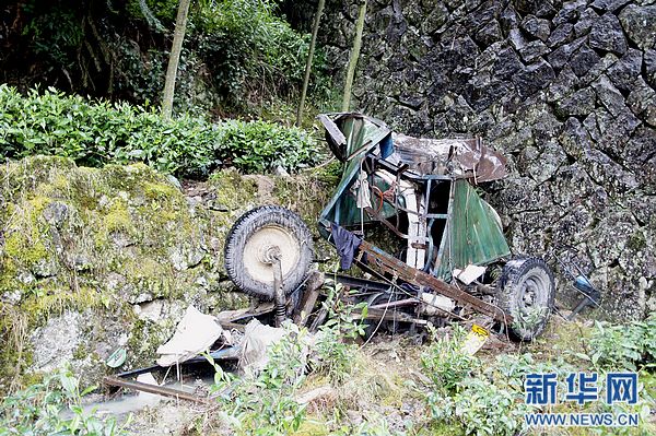 7月24日上午在事故现场拍摄的侧翻坠桥的三轮车残骸。 7月24日7时50分许,福建宁德市寿宁县南阳镇山坑村一辆三轮摩托车从山坑村开往南阳镇方向,途经一石桥路段时,车辆翻坠桥下,当场死亡13人,7人受伤。事发后,寿宁县立即组织开展施救工作,将7名伤员送往医院抢救。目前,事故原因正在调查中。 新华社发