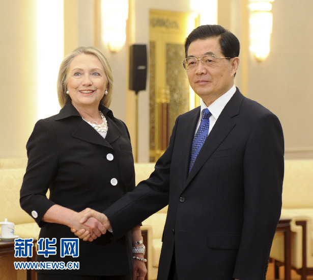 9月5日,中国国家主席胡锦涛在北京人民大会堂会见美国国务卿希拉里·克林顿。 新华社记者 张铎 摄