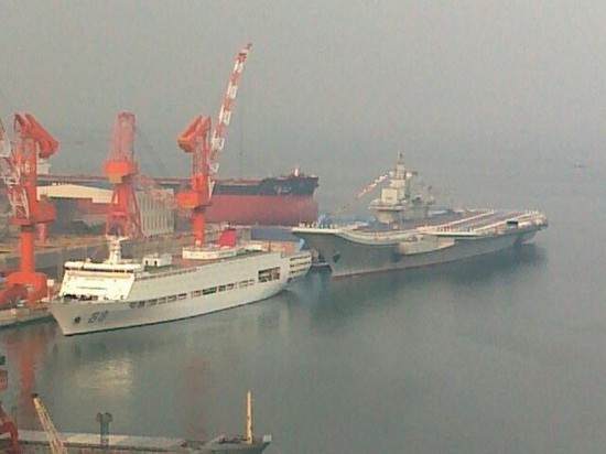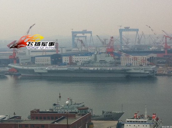 【环球网综合报道】2012年9月23日下午16时许,中国第一艘航母平台16号舰在大连举行交船仪式,16号舰与相邻停泊的88号舰全部挂满旗。16点40分,16号舰舰桥桅杆升起五星红旗,舰首升起八一军旗,舰尾升起海军旗,17点20分,交船仪式完成。16号舰不日将驶出大连港,前往海军航母驻泊锚地,在航母驻泊锚地,将举行16号舰入役仪式。