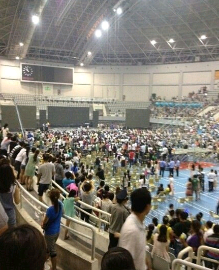 据现场观众爆料称,张信哲之后已经上台了,结果又被失控的观众撂凳子水瓶吓下去了!