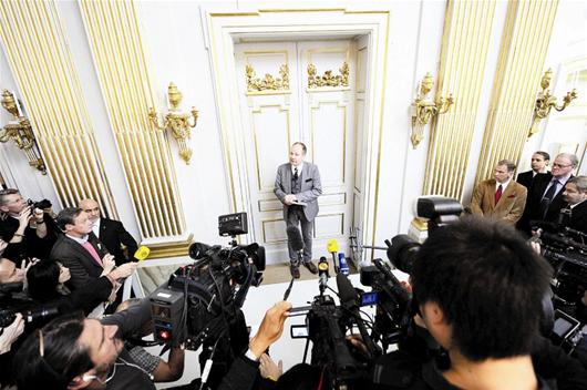 图为:瑞典文学院宣布莫言获奖 新华社发