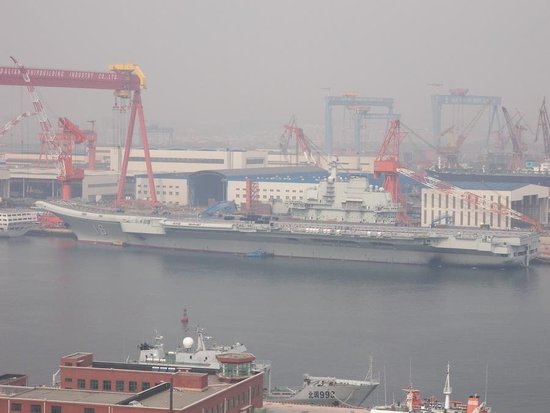 据消息人士透露,2012年9月23日16时许,中国第一艘航母平台16号舰在大连举行升旗仪式,16号舰与相邻停泊的88号舰全部挂满旗。16点40分,16号舰舰桥桅杆升起五星红旗,舰首升起八一军旗,舰尾升起海军军旗。