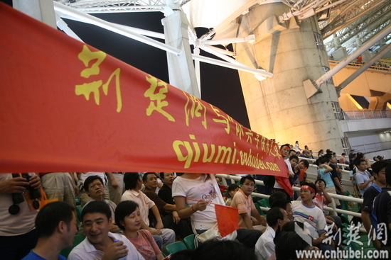 下午两点,网友们已经到达武汉体育中心,在外场等候的东湖社区论坛版主、资深球迷“毒老”,在众多的球迷中引起了央视采访者的注意。面对镜头虽然有些紧张,他兴奋而激动地说“武汉是块福地,武汉的球迷是最热情的。中国女足必胜!”表达了球迷的共同心愿和祝福。据了解,近5年来,中国女足在武汉体育中心保持了全胜的战绩。在接下来的比赛中再次证明了武汉球迷的话。