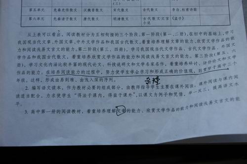 王定授认为教材对学生的思想道德素质培养重视不足,高中阶段是学生健康心理品质形成的重要阶段,教科书应该“寓教于文”,把孝道、诚信、敬业、对生命的关爱等等品质贯穿在课本中,但这类道德修养、素质在教材中没有体现。他还提出,教材存在着的文体单元结构编排模糊的现象。