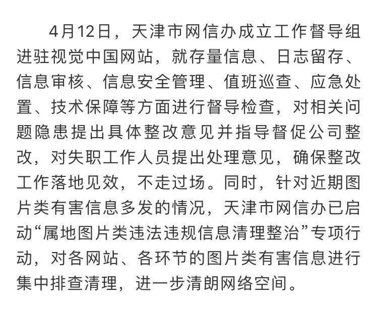 天津市网信办督导组进驻视觉中国。