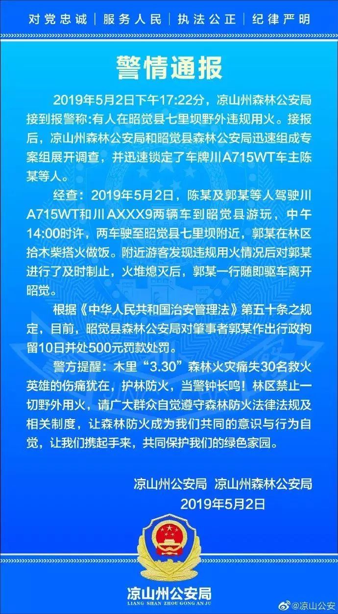 5月3日上午,凉山州公安局、凉山州森林公安局发布通报: