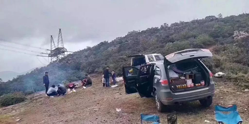 据网友发布的图片显示,一白一黑两辆越野车停在一处坡地上,一群人在旁边生火,看起来是在野炊。车辆所处位置附近有高山杜鹃花,网友猜测可能是到凉山旅游的车辆。