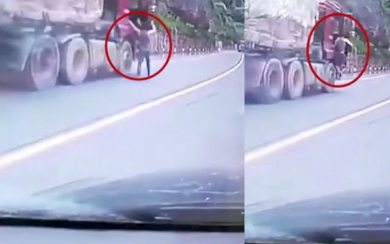 外国网友看完这段惊险的画面后表示:真是吓出一身冷汗!如果不是这位“公路英雄”,后果不堪设想。
