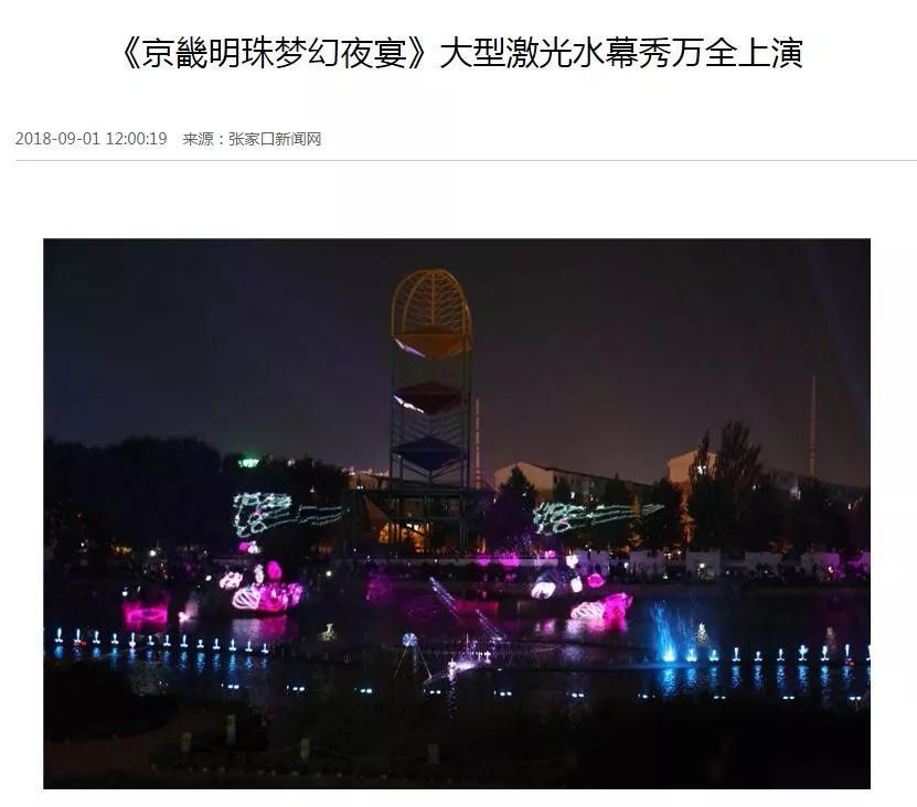 记者注意到,2018年,当地媒体曾以《<京畿明珠梦幻夜宴>大型激光水幕秀万全上演》为题进行报道。