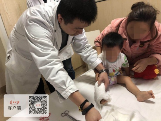 长江日报融媒体2月13日讯拜年走亲戚本是件高兴事,两岁男孩在亲戚家拜年时,却被其家中宠物犬咬断脚趾肌腱。在武汉市第四医院足踝外科病房内,明明母亲张女士连连责怪自己太过大意。