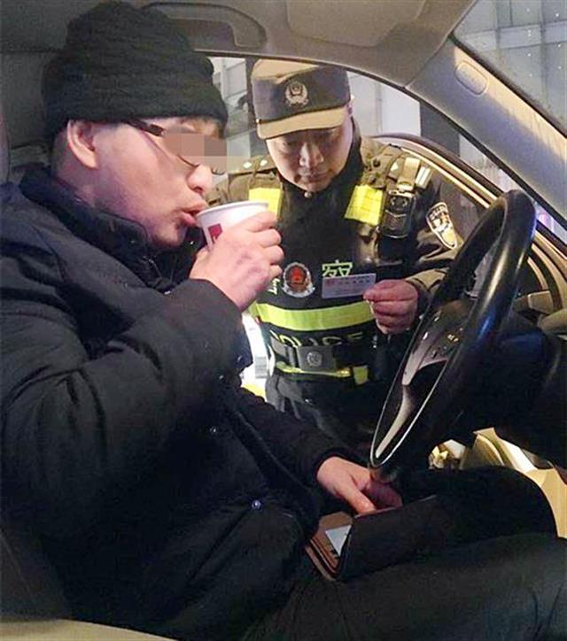 在转移过程中,司机手脚僵硬,双手却仍牢牢抓住方向盘不放,民警饶兴和协警叶飞合力才将司机抬到后座。随后,民警征求蒋女士同意后,将奔驰车开到了路边安全区域,并督促蒋女士赶紧去旁边超市买糖。