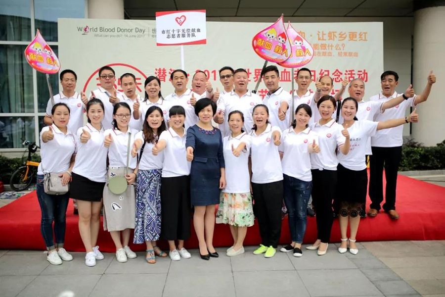 潜江市红十字无偿献血志愿者服务队开展志愿服务活动的合影