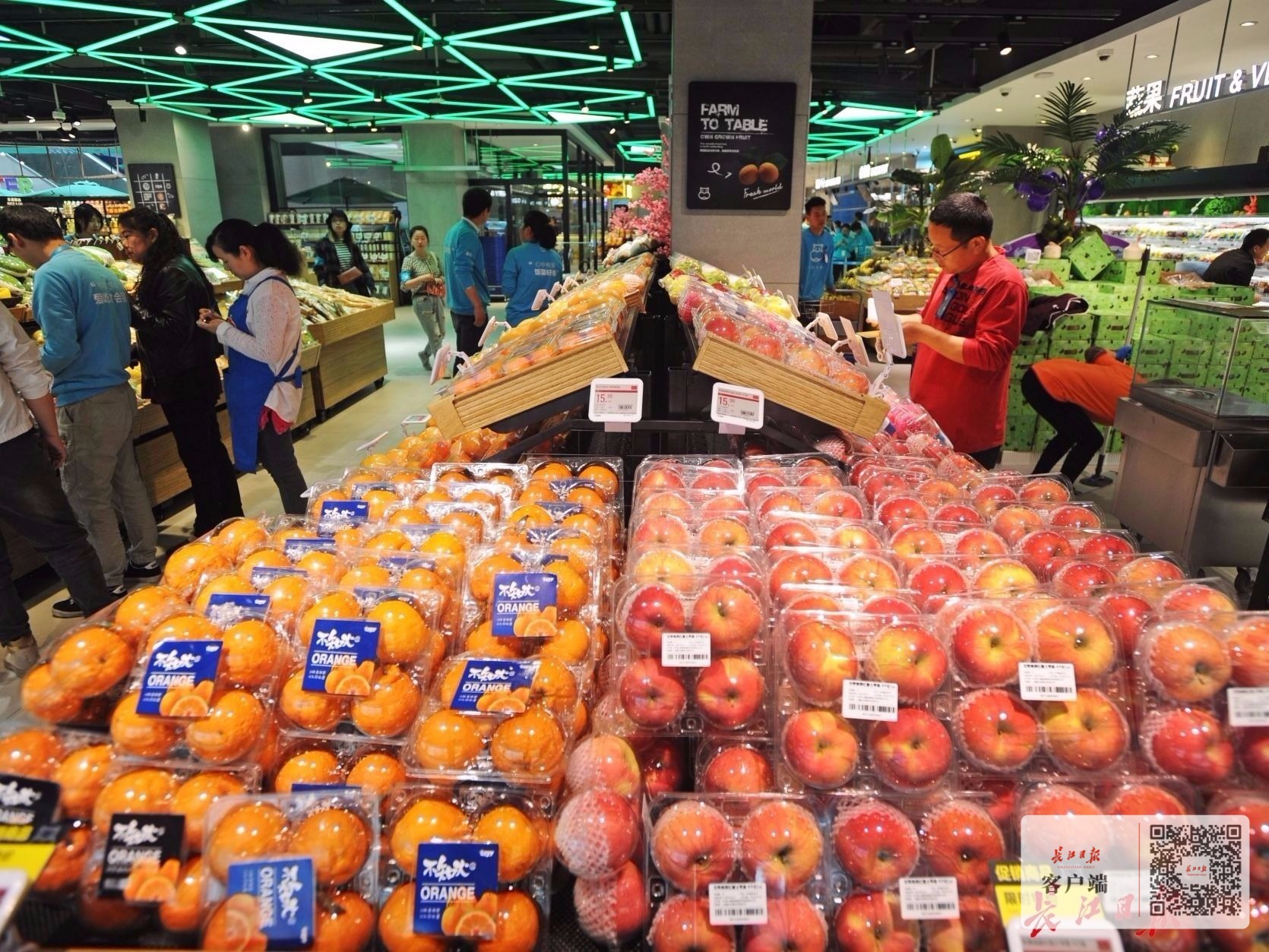 武汉的“盒马鲜生”超市里,琳琅满目的生鲜果蔬产品供市民选购。记者苗剑 摄 (资料图片)