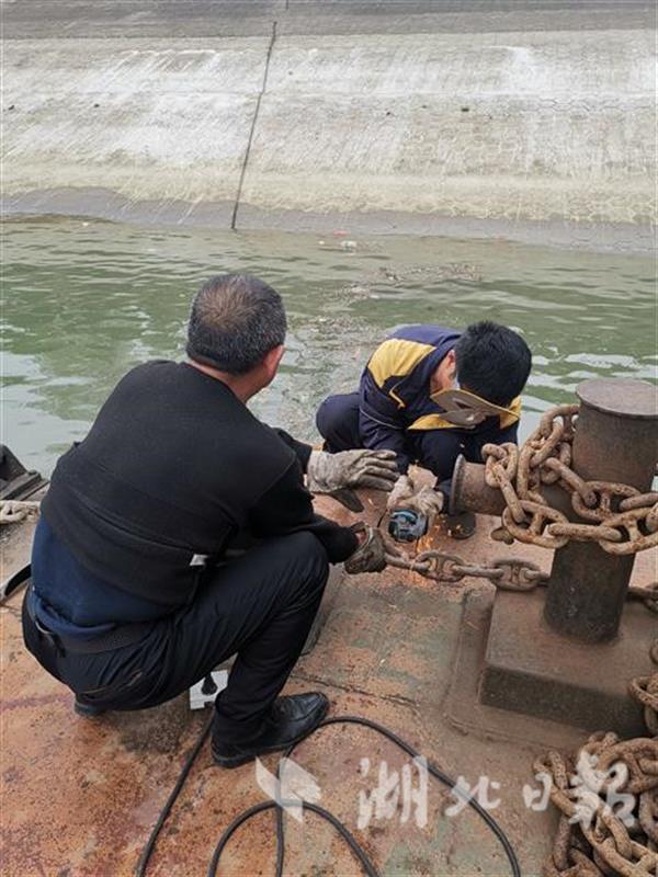 20日清晨5时,汉阳区交通治超队队员抵达迁移现场,有序完成锚链切割、相关设备断电处理、船只安全捆绑加固等安全迁移准备工作。