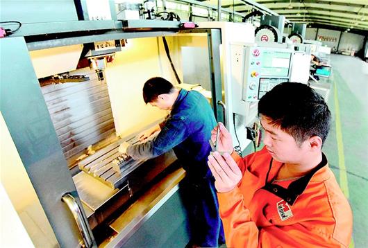 图为:3月13日,武汉镁里镁科技公司工人在加工机件。该公司加快铝镁锂等轻合金产品研发,开发的“中国标准动车发电机端盖国标化技术改造项目”在“复兴号”动车实现量产,打破了德国西门子、日本三菱等企业的技术垄断,填补了国内同类产品空白。(视界网叶雁翅摄)