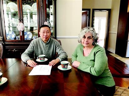 图为养母找到纽约黄鹤会会长刘春(左一)帮忙寻亲