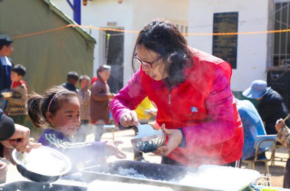 孩子们对周文君格外亲昵,活动间隙把“周阿姨”团团围起来,分享最近发生的有趣见闻。其中戴着红线帽、脸颊红彤彤的小孩叫马吉里布,今年只有5岁,他的父母双双离世,家里还有三个姐姐、两个哥哥在上学。从校长那里了解到马吉里布的情况后,周文君蹲在马吉里布跟前,把他抱在怀里,给他擦拭着小脸上的污渍,声音哽咽地给当地扶贫办相关负责人打电话说:“我想资助这个孩子。”这一决定,也得到了周文君丈夫的支持。