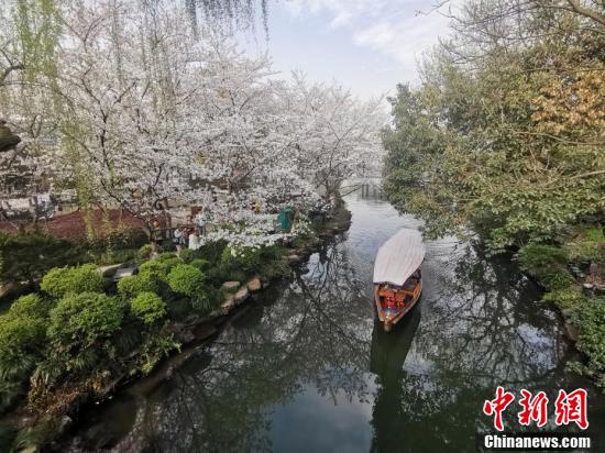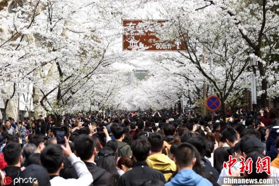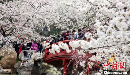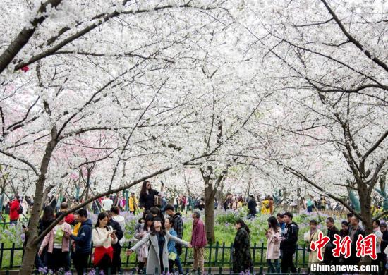 3月23日,2019“春在朝天吼”动漫樱花节在昭君故里湖北兴山县朝天吼景区举行,万名游客漫步浪漫花溪,踏青赏樱,看动漫秀。朝天吼景区是集水上娱乐、赛车、探险、休闲观光、研学旅行和户外运动为一体的综合性景区。近年来,景区先后投资1亿多元,对近7公里的漂流河道进行生态修复和绿化,在河道沿岸种植樱花、桃花、紫薇、玉兰、玫瑰等上百种植被花卉,满足一年四季游客赏花需求。 邹远景 摄