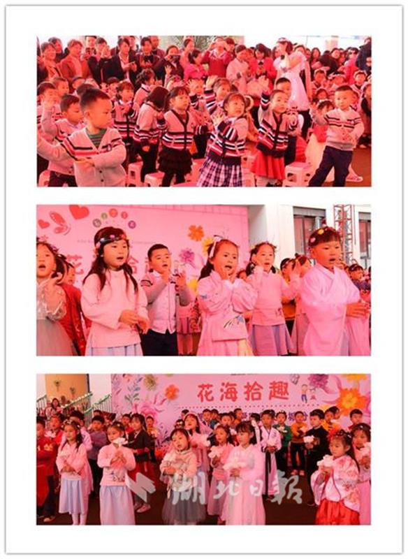“花神好美!”看着12位由老师扮演的“花神”翩翩起舞,小朋友大喊着。12位花神分别扮演着12个月各具代表性的花卉,并逐一向小朋友和家长们分享花语的秘密。各个班级的小朋友们唱起了《娃哈哈》、《兰花草》、《茉莉花》,家长和老师们笑声不断。