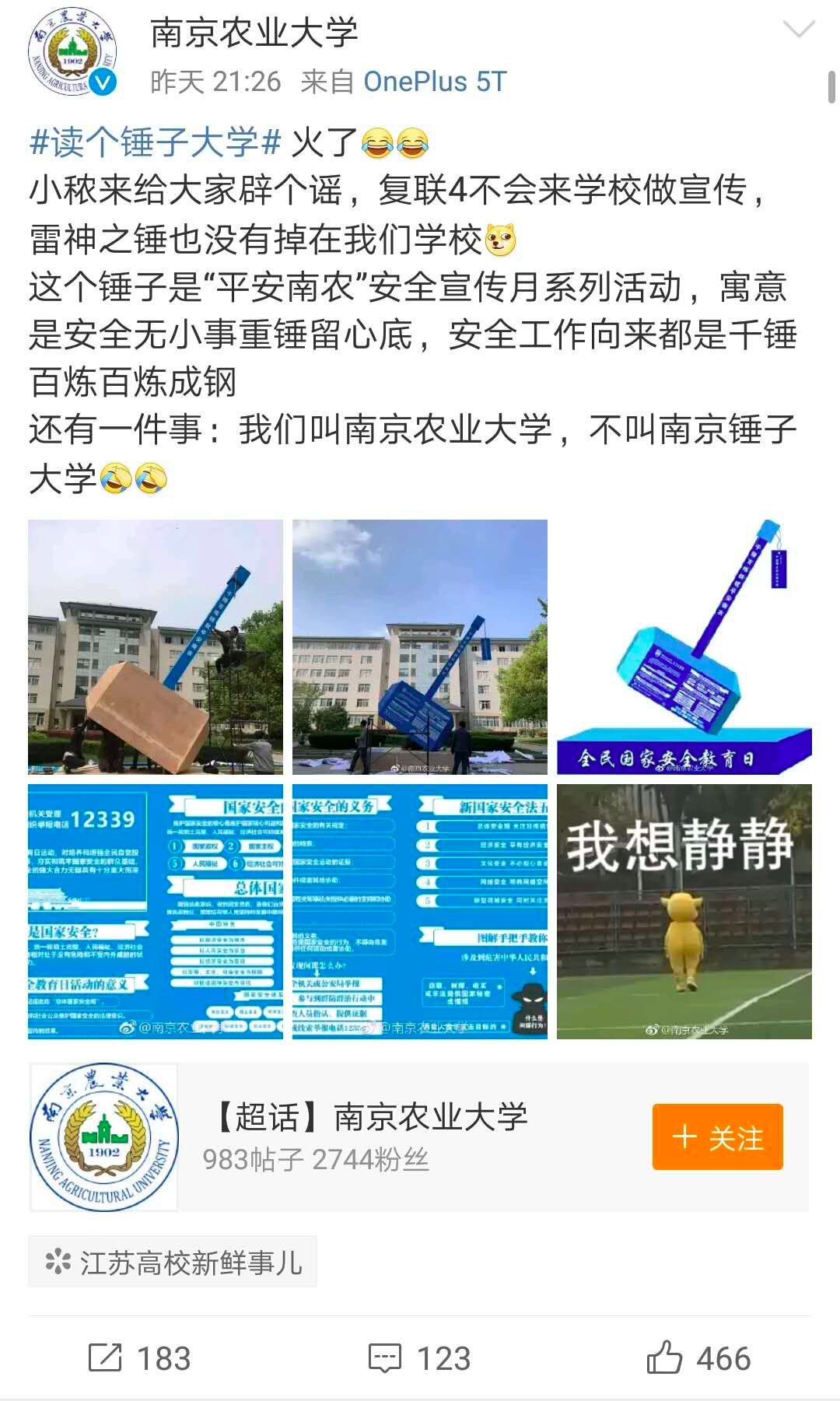南京农业大学冲上热搜,因为校园中出现的这个“锤子”!