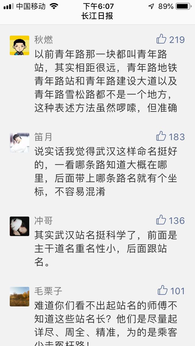 网友“冲哥”:其实武汉站名挺科学了,前面是主干道名重名性小,后面跟站名。