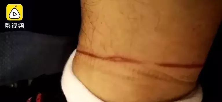 在这期间,为了避免让落水者和滑翔伞再次冲回海里,陈军站在海水里使劲拉住落水者和滑翔伞,而他的右脚腕被滑翔伞绳牢牢缠住,随着海水起伏绳子来回摩擦,陈军脚腕被勒出一圈深深的血痕。
