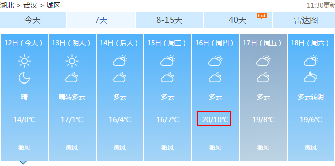 ☀最高气温:鄂西南12-14℃ ;其他地区15-17℃