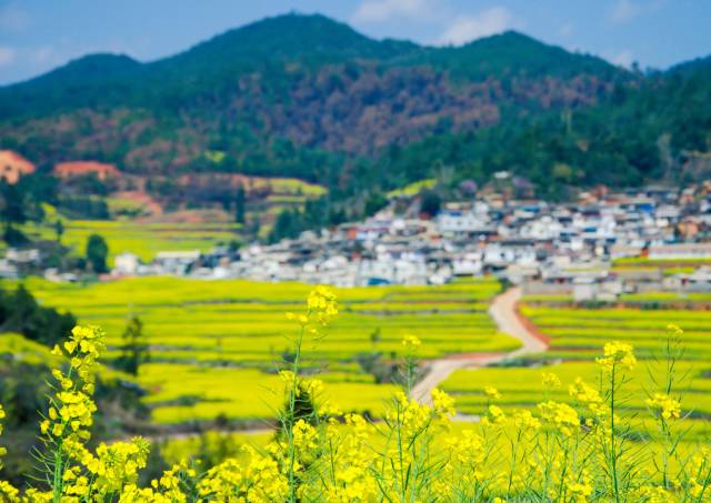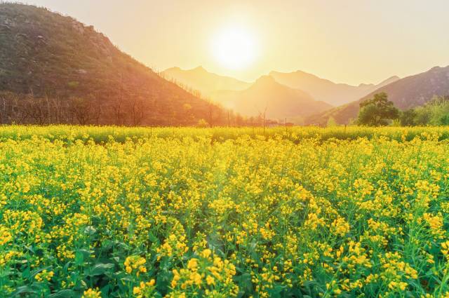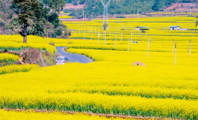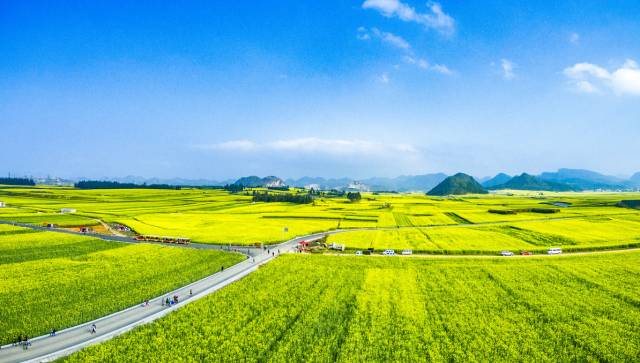 20万亩的油菜花竞相绽放,连绵数里,开成了金色的海洋,美得让人心醉。