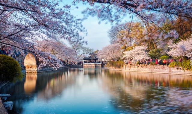 与日本弘前樱花园、美国华盛顿樱花园并称为世界三大樱花之都,30个品种10000多棵樱花遍植园内,更有有夜赏樱花活动。