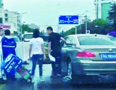 外卖小哥与宝马车主发生冲突 白衣女子全程劝架感动网友