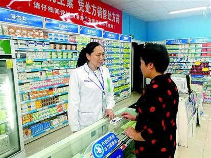 湖北日报讯 图为:驻店执业药师指导顾客用药。