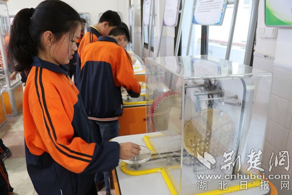 随后,在科普志愿者的引导下,参加活动的领导和师生观摩体验了汉江师范学院、湖北汽车工业学院的科技展品和展示项目,参观了实验中学科技创新活动室、创客工作室和太空种子种植基地。在流动科技馆,同学们兴致勃勃地观看了水果电池、航天模型、智能电磁铁、声音屏蔽仪和水力发电机等装置,详细询问了功能原理、制作材料和制作方法,在感受科技奇妙的同时又学到了许多的理论知识。在创客工作室,校外人士享受了一场丰盛的科技大餐,并现场操作了机器人、智能汽车、测距鞋,展示了实验中学丰硕的创新成果。在太空种子种植基地,小志愿者向大家认真介绍了种子变异的原因和选种过程,还悉心地为幼苗浇水施肥,在劳动中深化了对太空植物的理解。一位学生现场表示:“今天真是大饱眼福,我在开心快乐中掌握了很多科技知识,引发了‘头脑风暴’。今后,我会更加积极地参与科技创作活动,争取让自己的作品进入省级以上的赛场。”