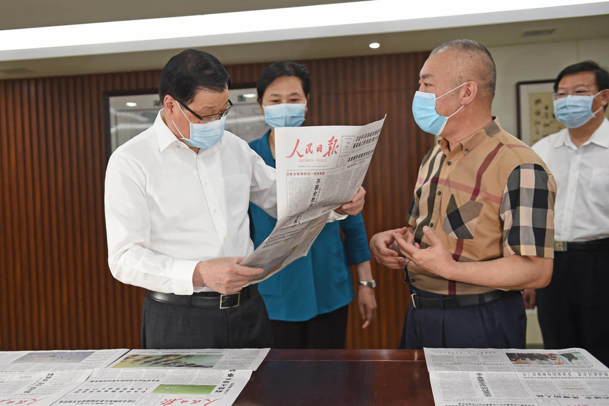 疫情发生以来,人民日报社湖北分社及报社前方报道组累计采写抗疫报道2000多篇、刊发图片300多幅,制作新媒体产品400多个。应勇来到人民日报社湖北分社,看望慰问记者编辑,察看相关版面内容,与青年记者亲切交谈,鼓励大家推出更多优秀报道,及时回应群众关切。
