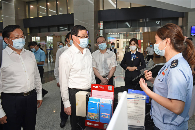应勇来到武汉市民之家,听取武汉市政务服务智慧管理平台运行介绍,察看企业开办专区、办税服务中心、24小时自助政务服务区、工程建设项目办理专区,详细了解商事登记、办税申报、工程建设项目审批等事项办理流程和时长,以及网上支付和快递等配套服务情况,现场询问市民办事体验。应勇强调,要建好用好大数据中心,加强数据汇聚整合应用,持续推进“一网通办”“全市通办”,努力实现面向企业和市民的所有政务服务事项“进一网、能通办”;要围绕高效办成一件事,推进业务流程革命性再造,系统重构部门内部操作流程、跨部门跨层级跨区域协同办事流程,坚持刀刃向内,深入推进行政审批制度改革,进一步减材料、减环节、减时间,真正让企业满意、让人民群众满意。
