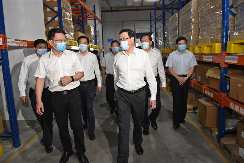 应勇来到公司保税物流园,察看进口肉类指定查验场、湖北跨境电商公共服务仓,听取肉类业务、口岸检疫、跨境电商及保税进口业务情况介绍。应勇强调,跨境贸易便利化水平是衡量营商环境的重要标准,通关效率直接关乎企业经济效益。希望海关在守好国门的前提下,对标国际一流,借鉴国内先进省市的好做法好经验,持续优化口岸营商环境,不断改进跨境贸易监管模式,促进跨境贸易便利化,以更高的通关效率、更低的通关费用、更优的通关服务,不断增强口岸吸引力和企业获得感,提升全省经济外向度。