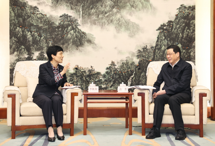 应勇与党史学习教育中央第四指导组组长于跃敏座谈