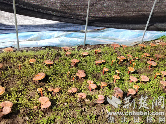 荆楚网(湖北日报网)讯(通讯员 向吉刚、左航、任毅)近日,笔者走进竹溪县桃源乡的一处大棚内,一垄垄的灵芝长势正旺,颜色粉嫩鲜亮,朵朵镶着金边,犹如撑开的小伞,在微风的吹拂下轻轻晃动,极似炫动的舞者。