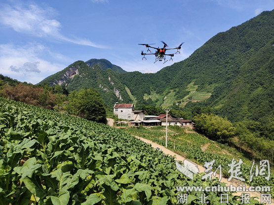 荆楚网(湖北日报网)讯(通讯员 周吉祥、任毅、陈绍锋)“飞过来了,飞过来了!”烟田旁传来了围观群众激动的声音……烈日下,小飞机喷淋过的烟株在微风的轻轻吹拂下,泛着生机勃勃的绿意。
