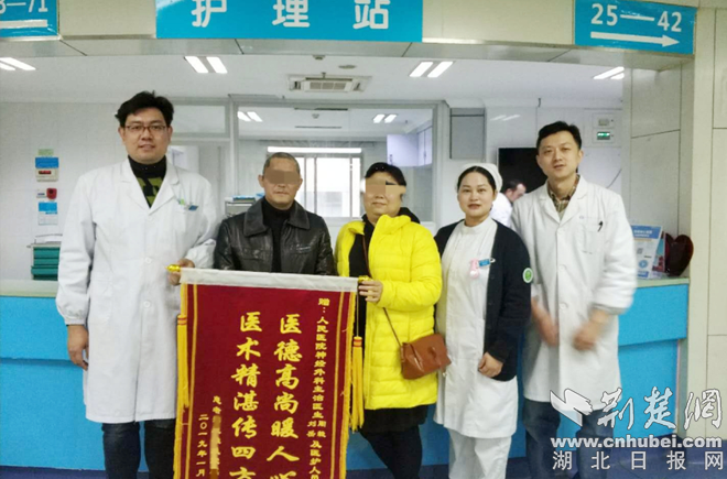 荆楚网客户端—荆楚网消息(通讯员 杜天平 王文新)“十堰市人民医院医疗技术水平真高超,把我从鬼门关拉了回来,谢谢你们救了我的命啊!”近日,身体康复的患者郑先生和家属将一面“医德高尚暖人心医术精湛传四方”的锦旗送到十堰市人民医院神经外科,感谢神经外科医护人员的救命之恩。