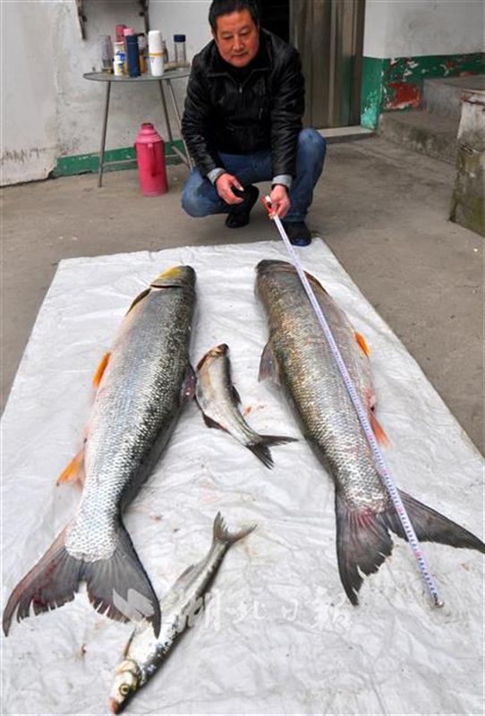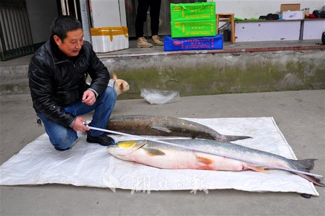 湖北日报讯(记者周寿江、通讯员陈华平)1月28日,丹江口市清福野生鱼有限公司在丹江口水库收获两条野生鳡(音同“感”——记者注)鱼,重分别为88斤和86斤,长度分别为1.6米和1.5米。