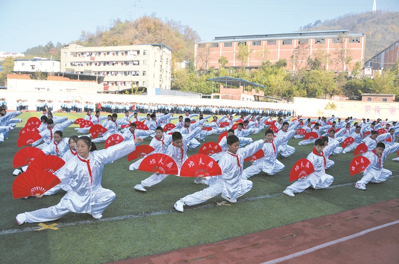 茅箭中学的德育活动——功夫扇表演。