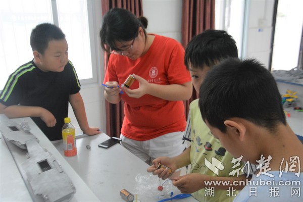 大学生志愿者指导学生制作科技产品。通讯员 王金国 摄